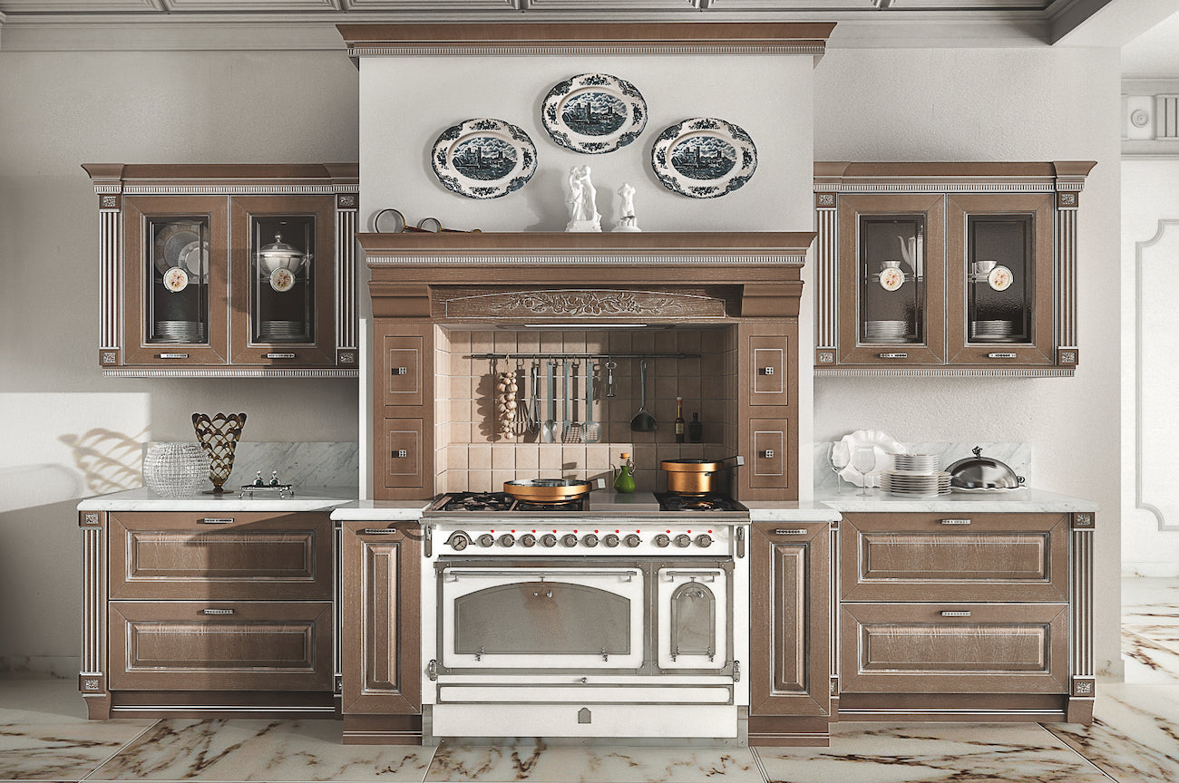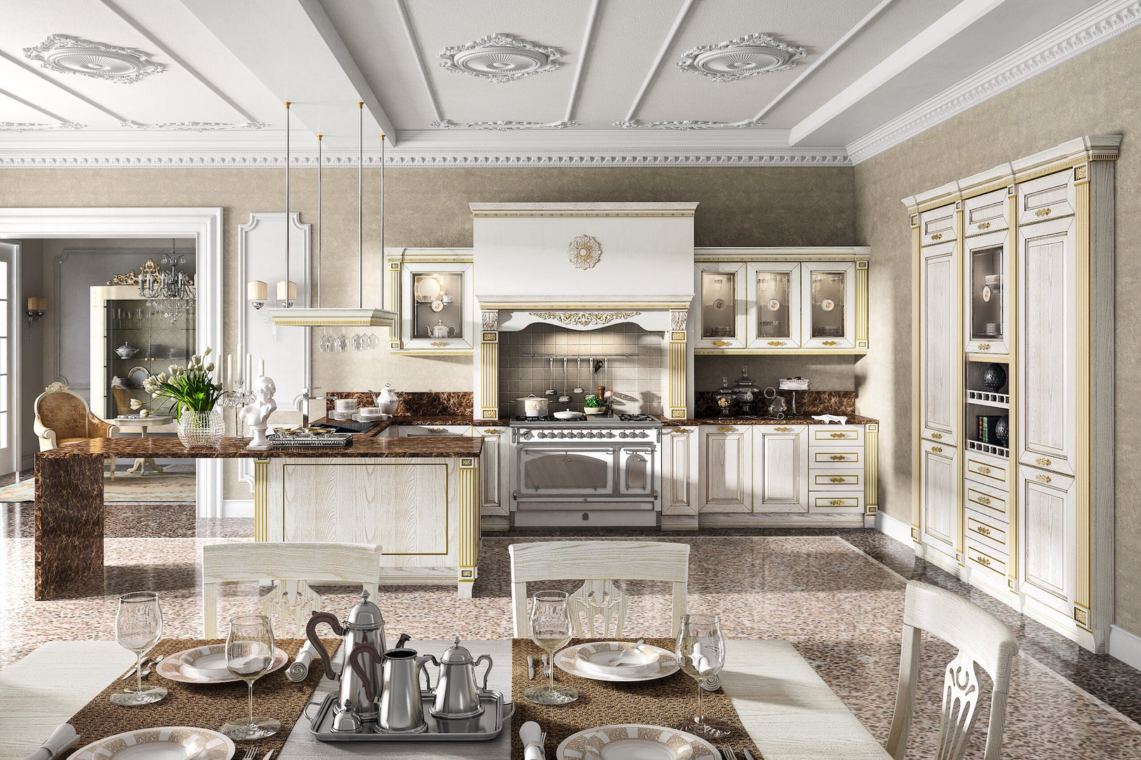 IMPERIAL, un model extrem de elegant cu un design clasic care ii scoate in evidenta tot rafinamentul, cu finisaje aurii/argintii pentru usi si detalii. În acest model, tehnologia și tradiția se combină perfect pentru a arăta cel mai bun design „Made in Italy”. Detaliile neoclasice pot fi găsite în toate componentele modulare ale bucătăriei, pentru un aspect tradițional care menține pe deplin confortul vieții contemporane. Imperial, cu acest produs avansat al Classic Collection îmbunătățește pe deplin aceste concepte, prezentându-se cu fronturi din lemn masiv de înaltă calitate, în următoarele variante de culoare mate: Alb Argintiu, Alb Auriu, Nuc Auriu, Albastru Argintiu, Trandafir Argintiu, Argintiu Argintiu, Negru. Argint.